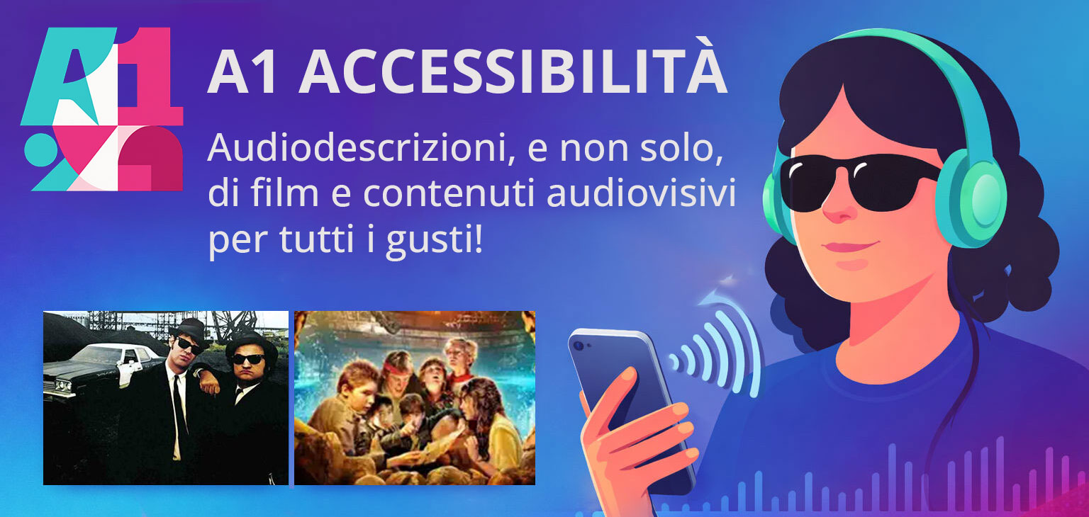 Inserisci gratuitamente la tua audiodescrizione nella APP "A1 Accessibilità", la app di tutti gli spettatori. consenti di distribuire e fruire liberamente degli ausili, e connetti il tuo contenuto con il primo indice italiano dei titoli accessibili e non solo.